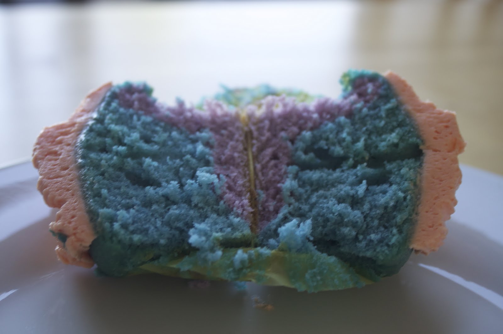 I personally liked the off center frosting. It made it look like a little party hat - and I was so down to party with this cupcake. Too bad I didn't get to sample it! Next time. Thanks, Birdy, for doing the hard work for me!
